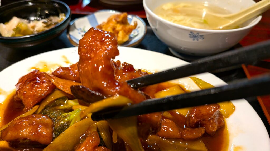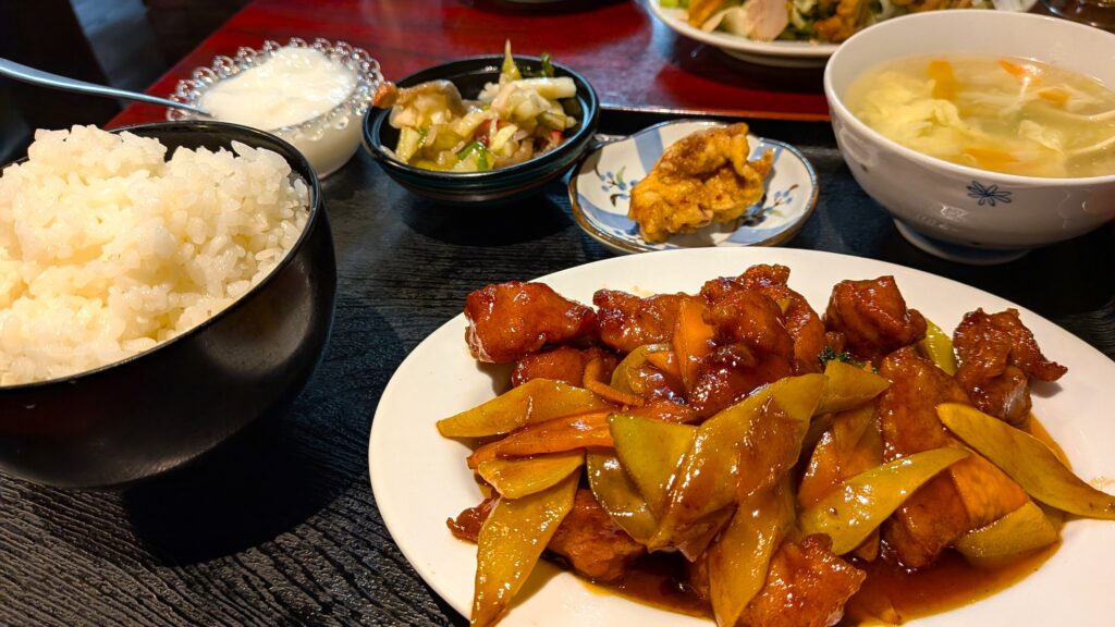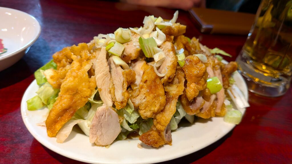 …刻んだ“唐揚げ”に甘酢がかかっただけだけど…野菜もモリモリで(^.^)旨いです(^.^)…