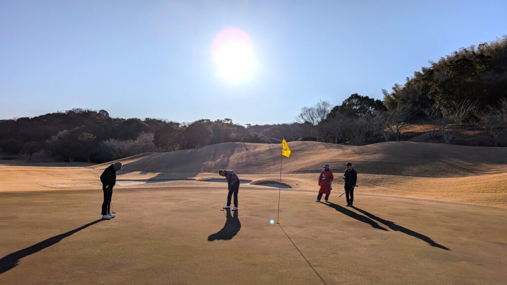 また風も強くて(-_-;)…グリーンも凍ったところもあって(-_-;)…真冬のゴルフとなりました(-_-;)