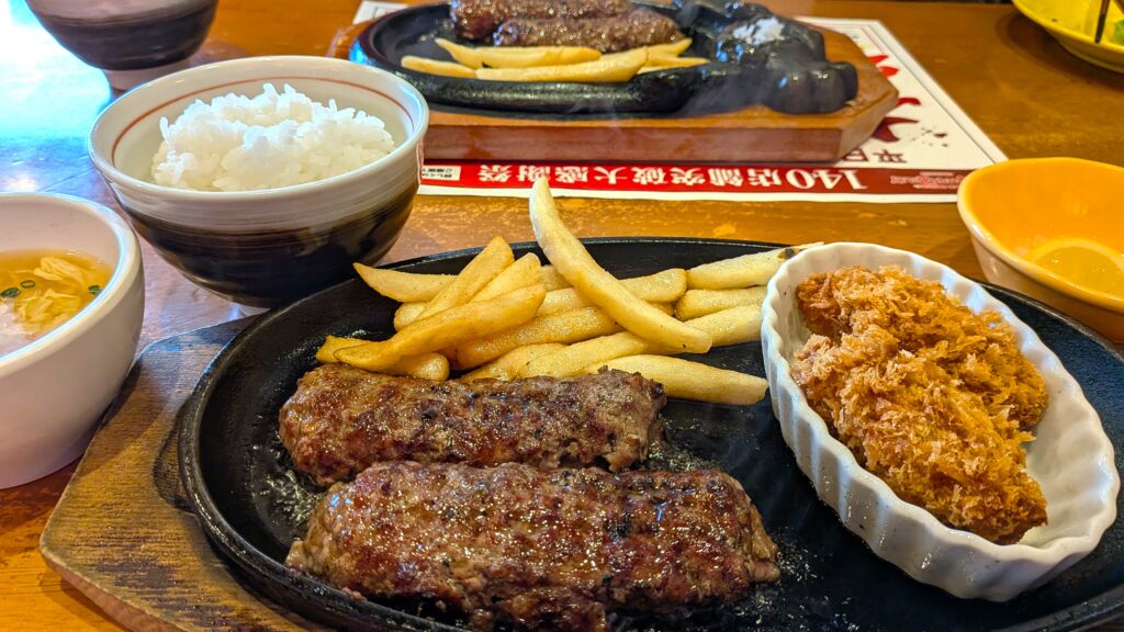 【ブロンコハンバーグ】×2…と…↑↑カキフライを×2個だけいただきました(^^♪