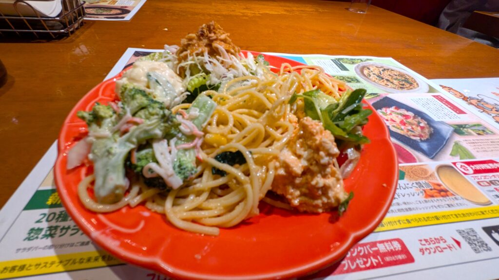 パスタが2種類あって…手前が“ツナパスタ”(-_-;)慌てて大量に取ってしまった(-_-;)