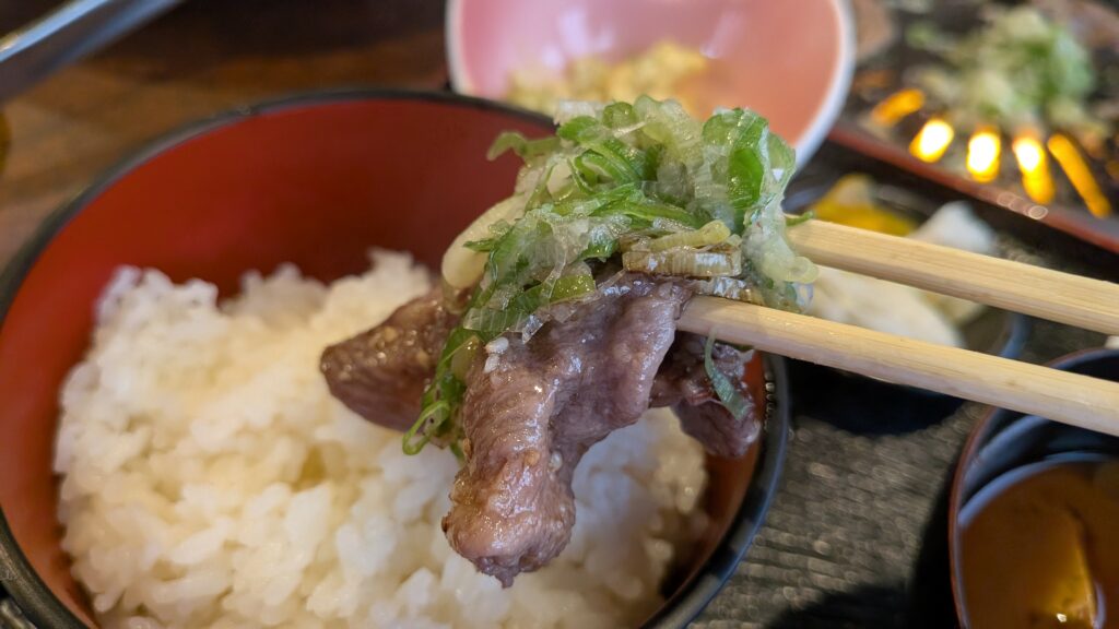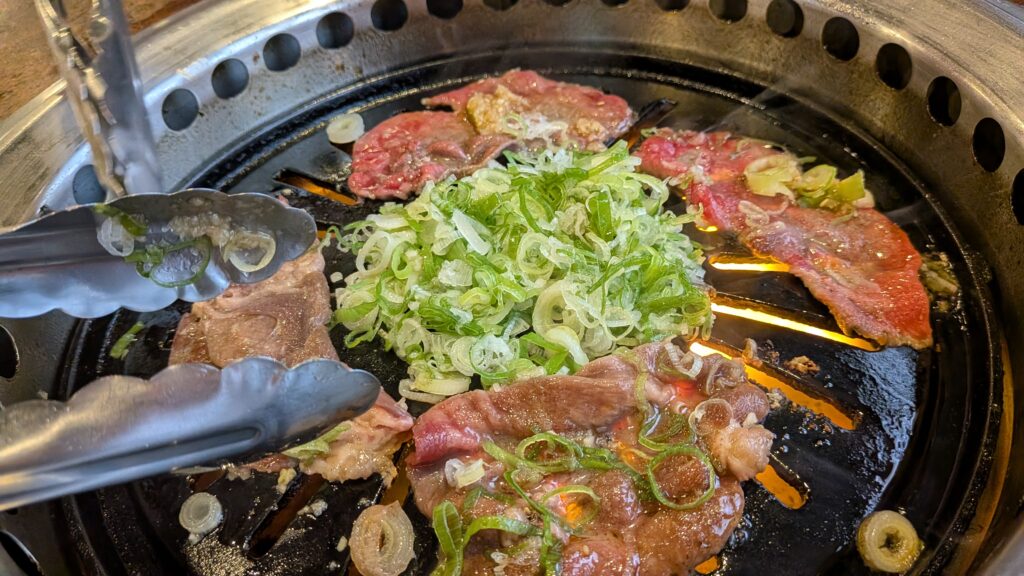まずは!鉄板部分で!ネギを!しっかり焼いて!