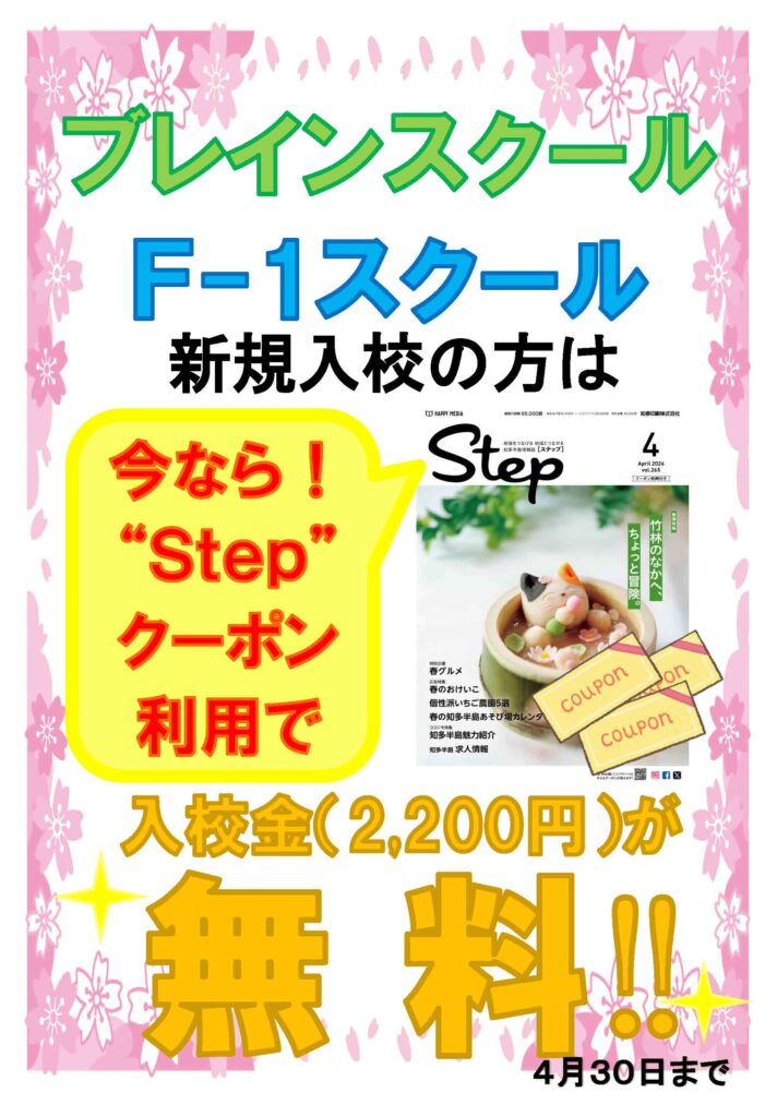 新規スクール生募集中!「Step」4月号クーポン利用で入校金無料!!