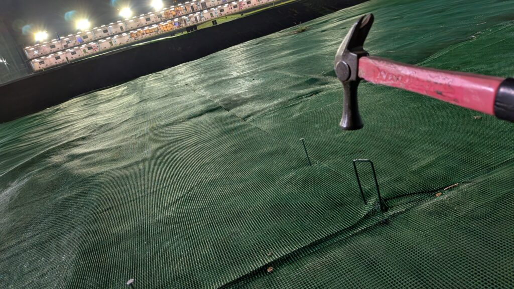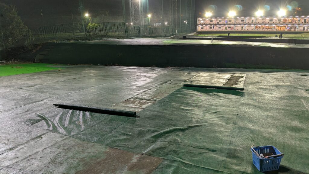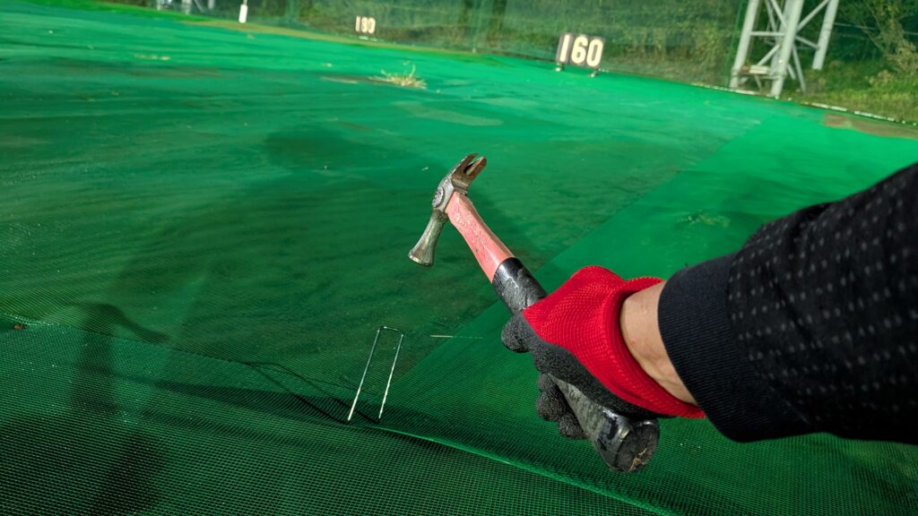 人工芝の補修を(-_-;)