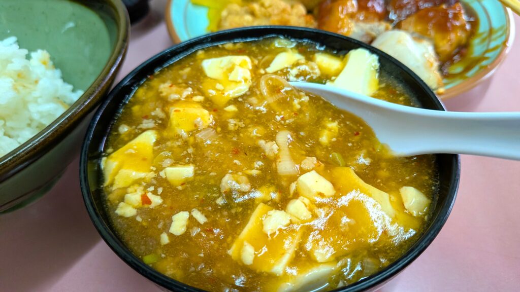吸い物椀に…パンパンの“麻婆豆腐”(^^♪