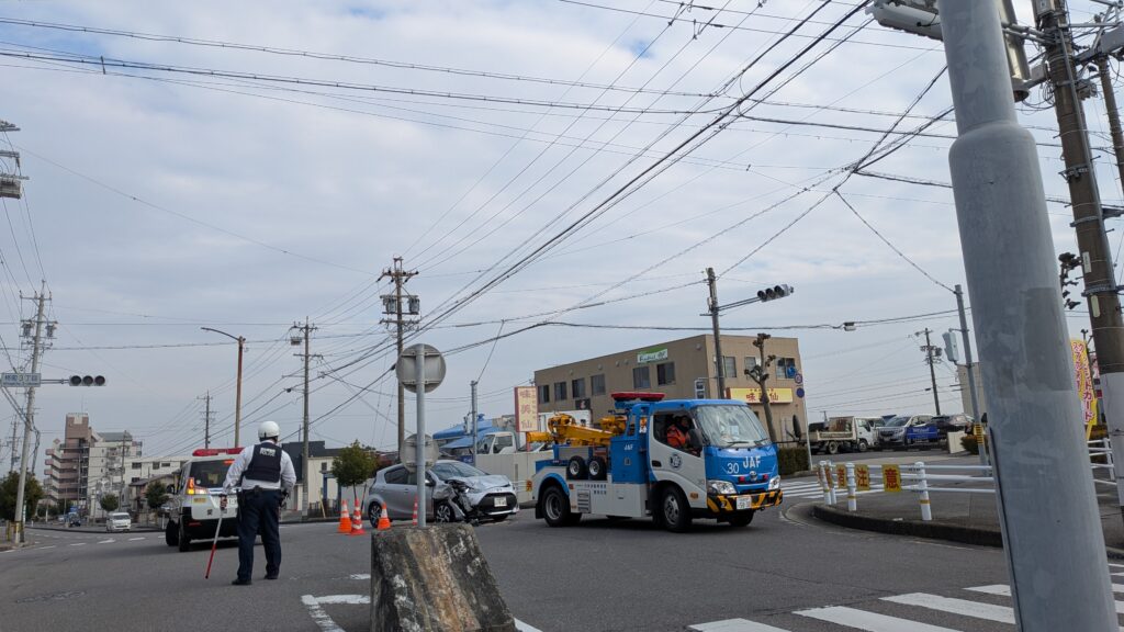 さっき両替行ったら…アオキスパーの前で事故してました(-_-;)
