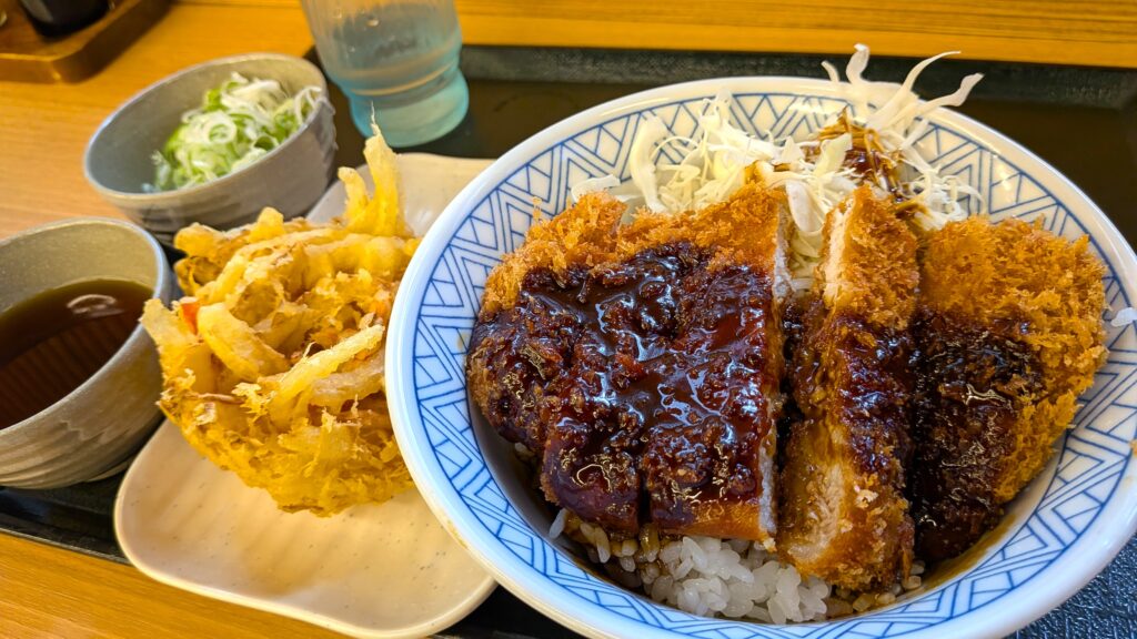 【味噌カツ丼】@660…と…赤出汁が欲しかったので(^.^) +【野菜かき揚げ】@150もいただきました(^.^)