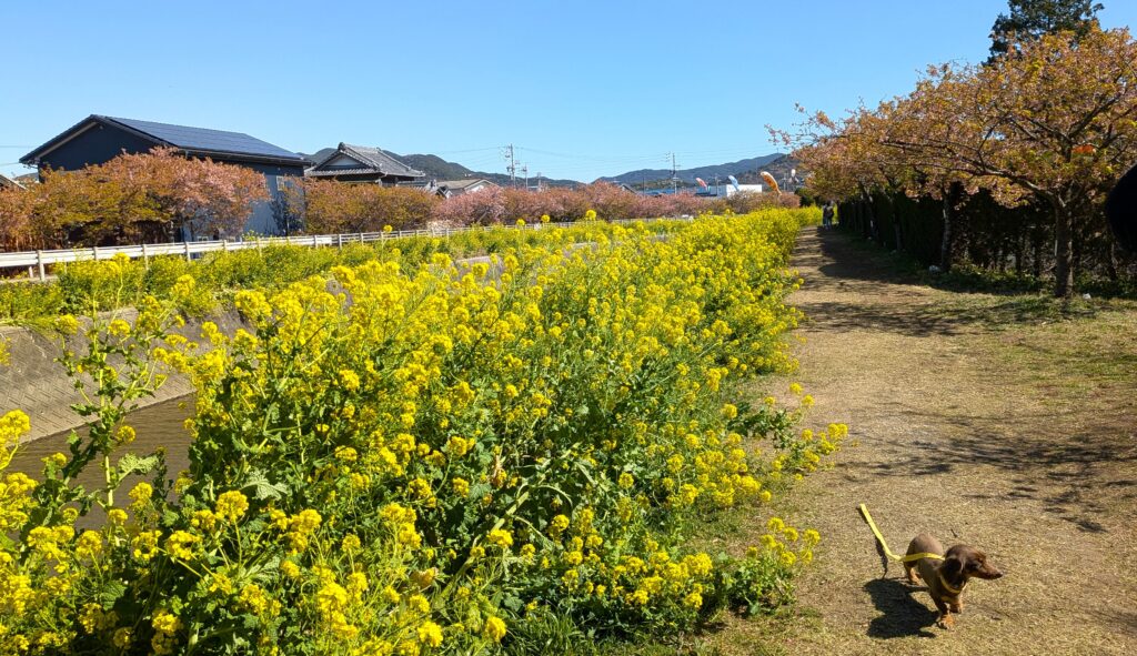 【免々田川の河津桜】の遊歩道へ(^^♪