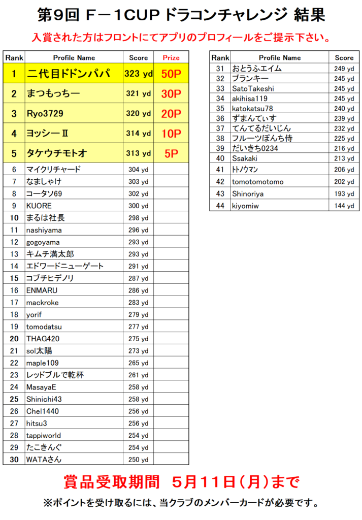 第9回F-1CUPドラコンチャレンジ結果