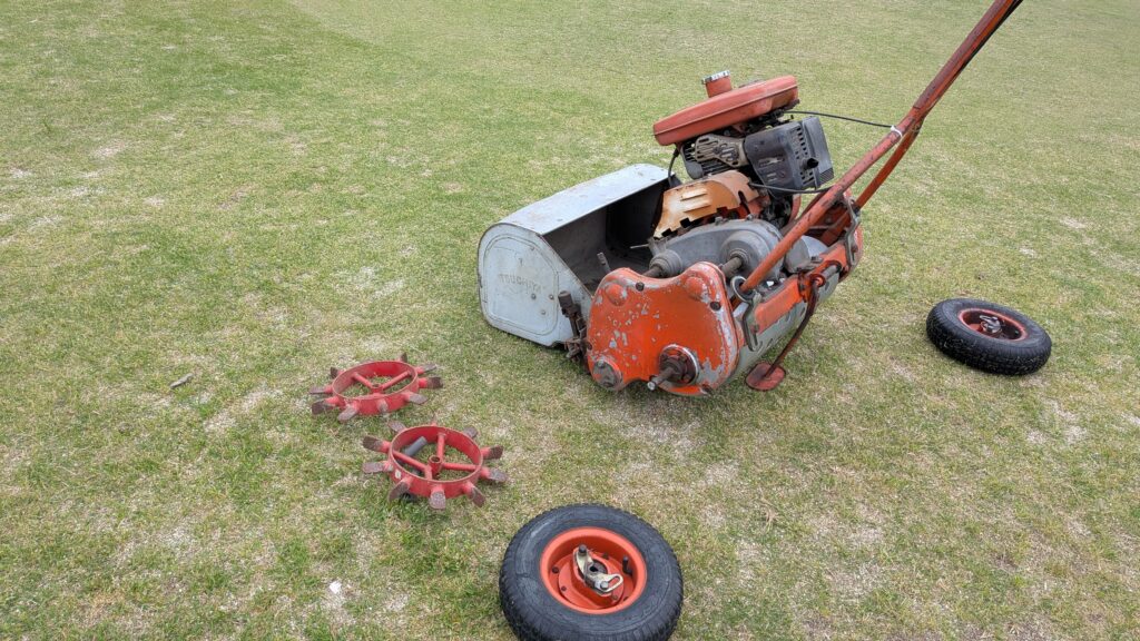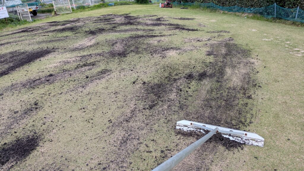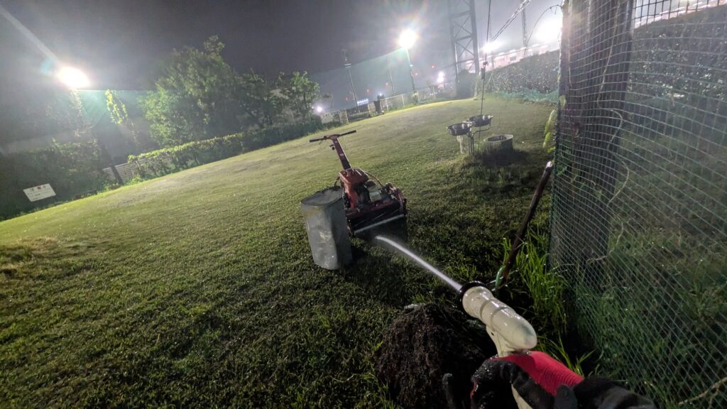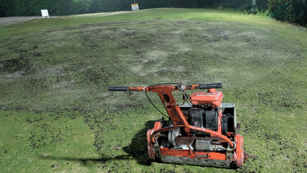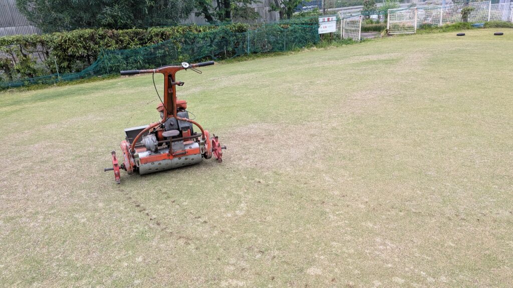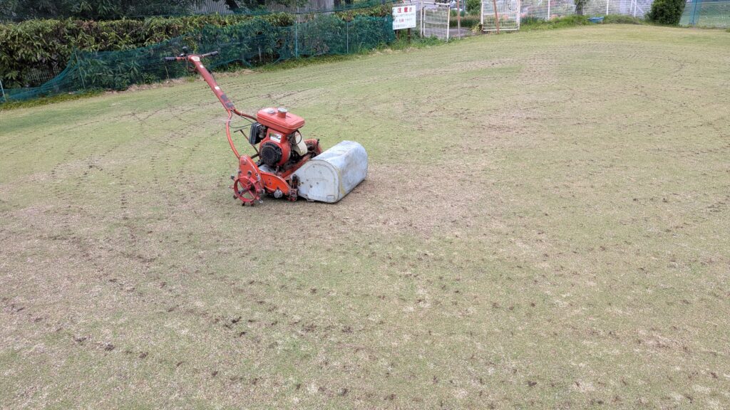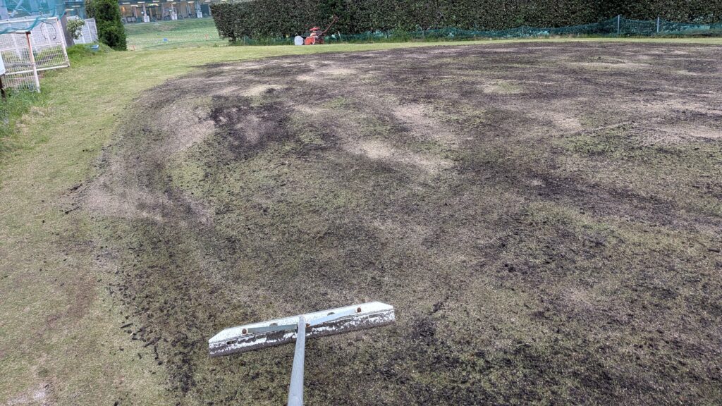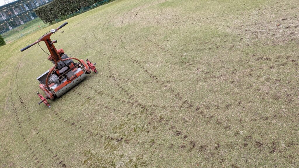 芝刈りながら~…余分な“目砂など”を回収します(^^♪