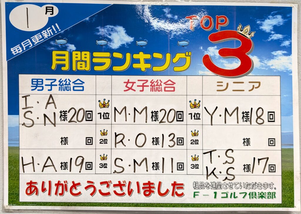 1月の来場回数ランキング!集計しました!!