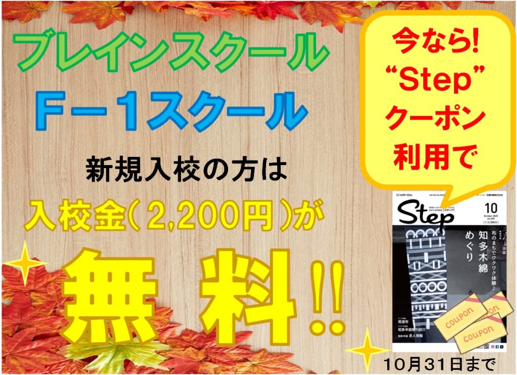“Step”10月号クーポン利用でスクール入校金無料!!
